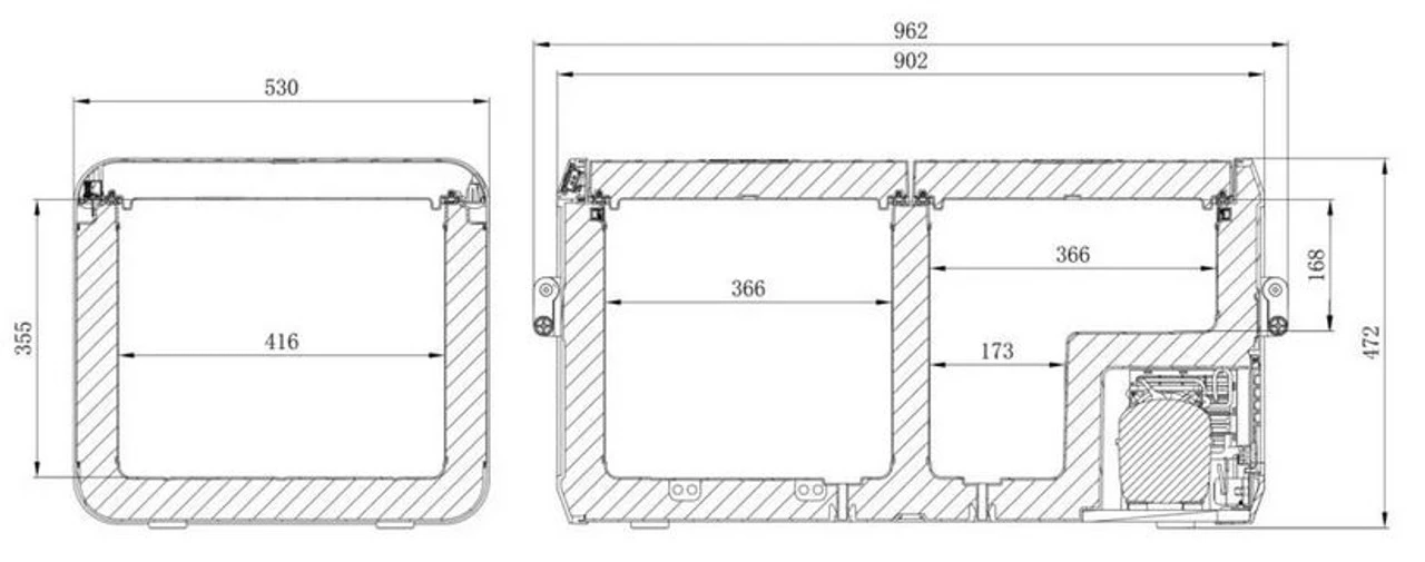 - Dimensions: depth 530 mm, height 472 mm, width 962 mm